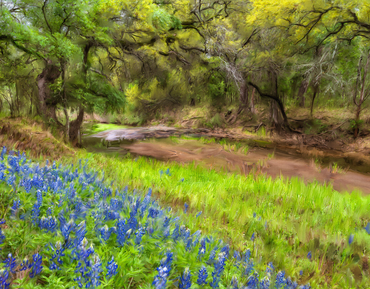 BLUEBONNETS ON THE RIVERBANK