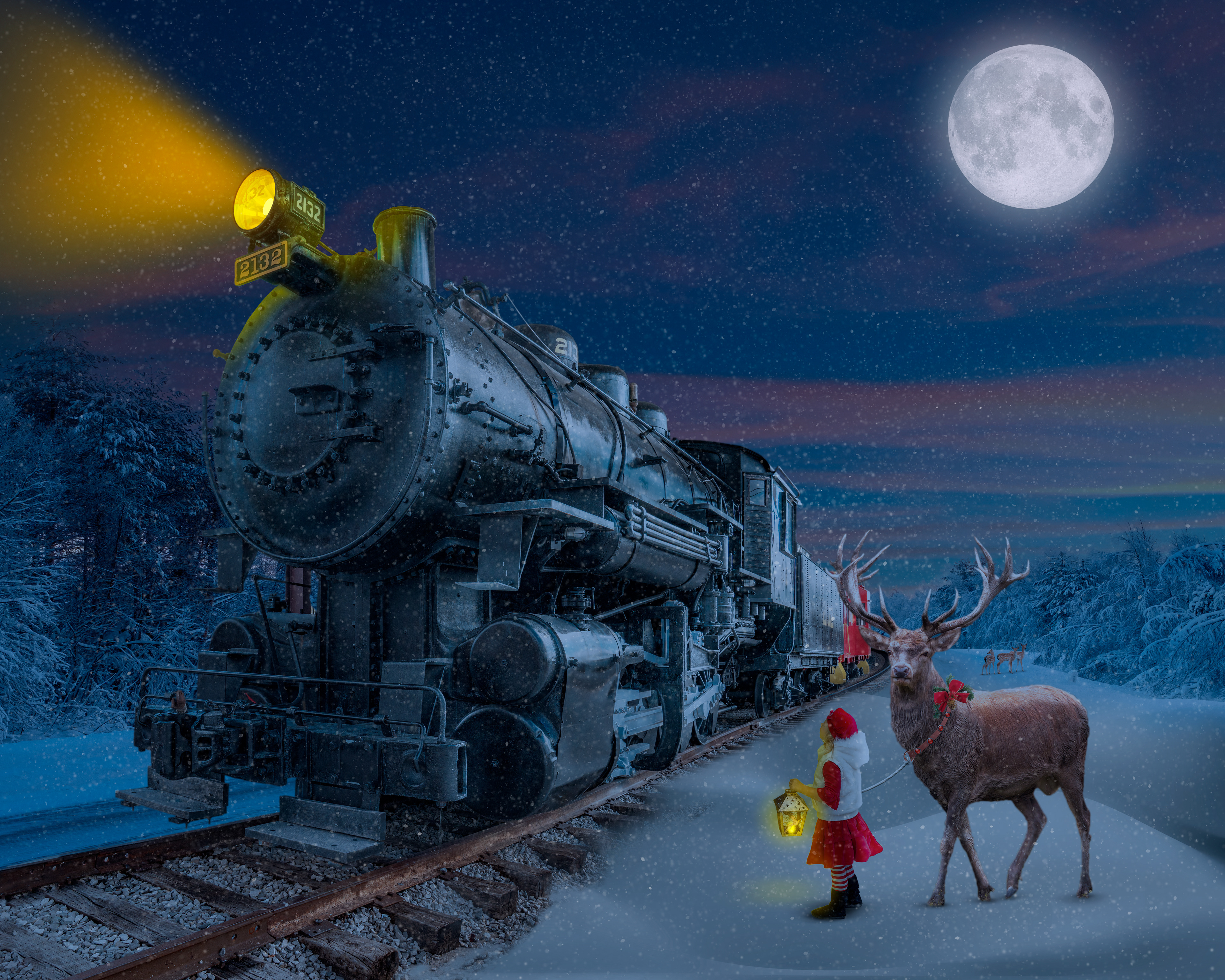 My composite of "The Christmas Train".. sort of a take on the Polar Express theme. Below are the images used in this artwork. The moon and now are brushes.